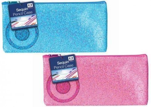 A fun and stylish sequin-covered pencil case, perfect for school or gifts.