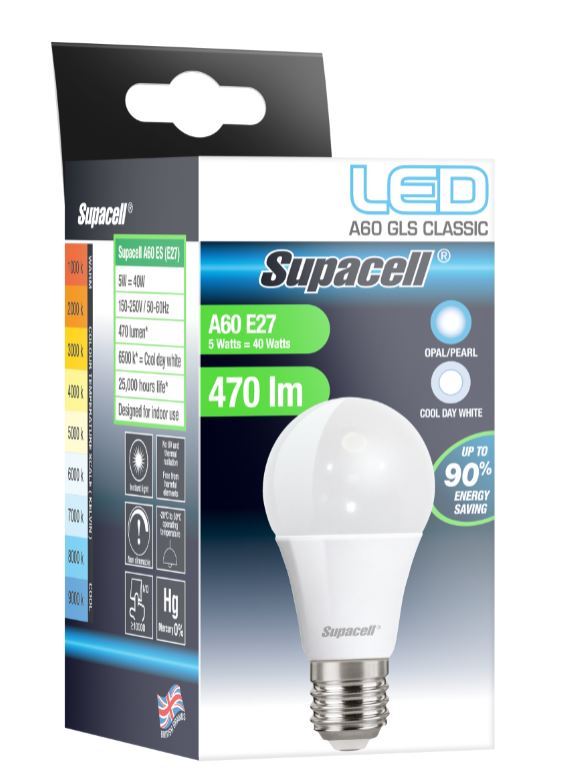 A reliable and bright lighting solution, the Supacell E27 5W Cool White LED Bulb is perfect for kitchens, bathrooms, or offices needing crisp, clear light.