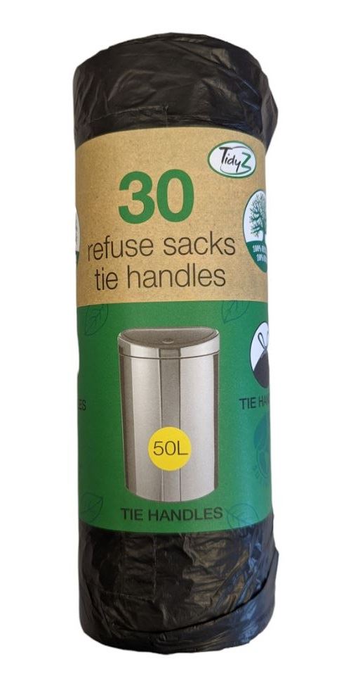 TIDYZ 30 TIE HANDLES REFUSE SACKS 50L