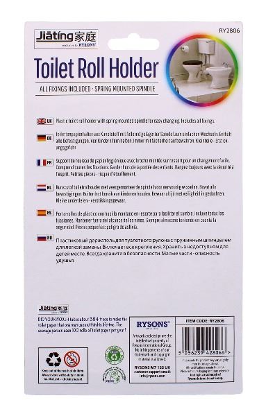 Durable and lightweight plastic toilet roll holder for wall or free-standing use.
