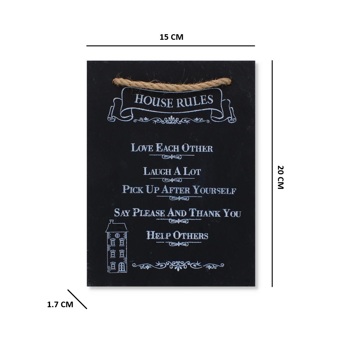 Add character to your walls with this decorative slate plaque featuring “House Rules.”