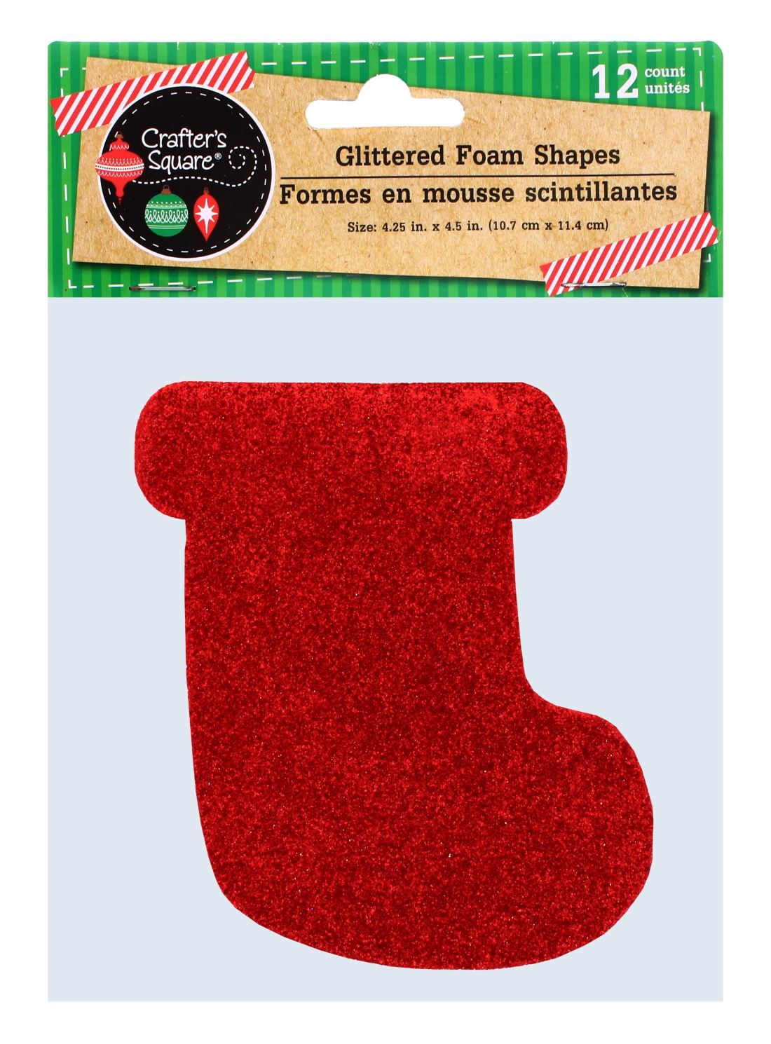 Add sparkle to your holiday crafts with assorted glittered foam Christmas shapes.